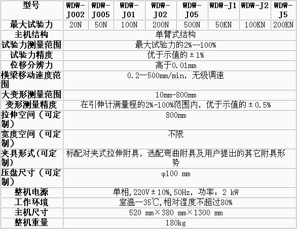 WDW-J型電子式萬能試驗機(jī)主機(jī)與輔具的設(shè)計融匯了我公司的先進(jìn)技術(shù),外形美觀,操作方便,性能穩(wěn)定可靠。系統(tǒng)通過全數(shù)字控制器,系統(tǒng)控制電機(jī)轉(zhuǎn) 動,經(jīng)減速系統(tǒng)減速后通過精密絲杠副帶橫梁上升、下降,完成試樣的拉伸力學(xué)性能試驗,,無污染、噪音低,效率高,具有較寬的調(diào)速范圍。該機(jī)廣泛應(yīng)用于建筑建 材、航空航天、機(jī)械制造、電線電纜、橡膠塑料、紡織、家電等行業(yè)的材料檢驗分析,是科研院校、大專院校、工礦企業(yè)、技術(shù)監(jiān)督、商檢仲裁等部門的理想測試設(shè) 備。 功能特點(diǎn): 主機(jī) 1.1采用高鋼度單臂式主機(jī)結(jié)構(gòu),強(qiáng)度高、變形; 1.2 采用進(jìn)口高精度滾珠絲杠,傳動高效平穩(wěn); 1.3 傳動部分采用圓弧齒同步帶傳動,,傳動過程中雙向無間隙; 1.4傳動平穩(wěn),力矩穩(wěn)定,,具有過流、過壓、過載等保護(hù)裝置; 1.5 夾具經(jīng)特殊設(shè)計,夾持牢固,操作方便,無鉗口滑移現(xiàn)象; 1.6 特殊工藝保證試驗機(jī)同軸度,很好的消除了不規(guī)則試樣對傳感器的影響。 2控制系統(tǒng) 觸摸健操作方式,液晶顯示器實時顯示,克服了老式數(shù)碼管顯示容易發(fā)生故障的難題,并且美觀大方、方便快捷。 技術(shù)參數(shù):