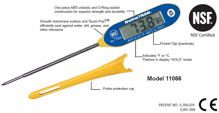 FlashCheck 大型顯示器細(xì)端探頭溫度計,溫度計 被測物,探頭的特性是理想的測量“薄質(zhì)”食物如肉餡,溫度計的構(gòu)造圖,雞肉和魚排工具(依照FDA食物手冊4-302.12(B))。溫度計是在精確的標(biāo)準(zhǔn)下設(shè)計和制造并且滿足商業(yè)和專業(yè)的使用規(guī)格。