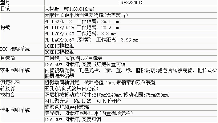 產品概述: 適用于對多種物體的顯微觀察。 功能特點: 配置落射DIC觀察系統(tǒng)與透射照明系統(tǒng)、無限遠長距平場消色差物鏡、大視野目鏡和偏光觀察裝置,具有圖像立體感且清晰、造型美觀,,操作方便等特點,是生物學、金屬學、礦物學、精密工程學、電子學等研究的理想儀器。 技術參數: ★ 采用優(yōu)良的無限遠光學系統(tǒng),,可提供卓越的光學性能。 ★ 緊湊穩(wěn)定的高剛性主體,充分體現了顯微操作的防振要求。 ★ 符合人機工程學要求的理想設計,使操作更方便舒適,空間更廣闊。 ★ 內置式可切換偏光觀察裝置,起偏器可360°旋轉。 ★ 微分干涉相襯觀察時圖像清晰,,干涉色均勻,具有較強的浮雕感。 基本配置: