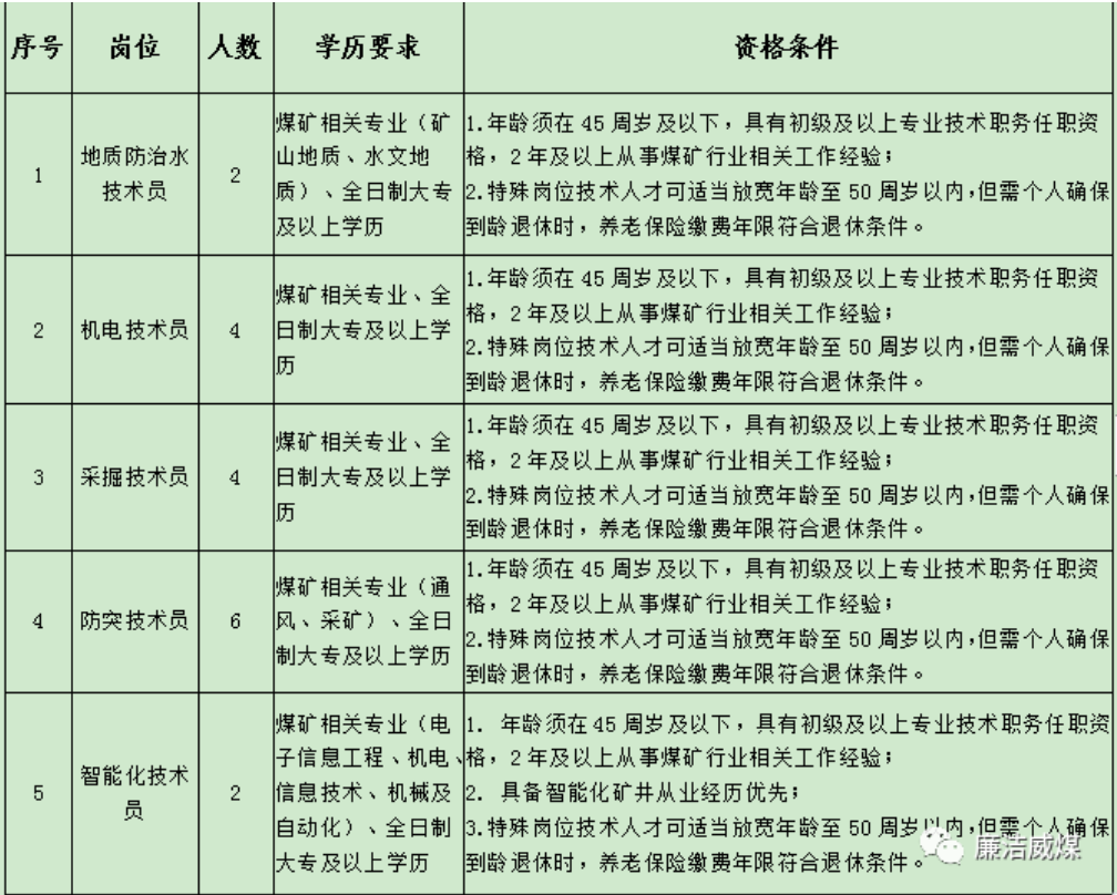 云南能投威信煤炭有限公司計劃招聘專業(yè)技術(shù)人才18名,具體招聘崗位及資格條件下表: